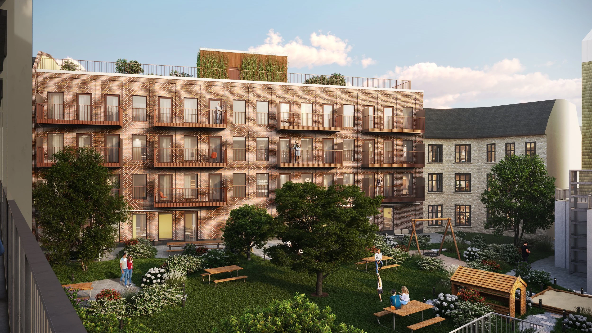 Mikroboligerne tilbyder smarte, kompakte hjem med alt, hvad det moderne menneske har brug for. Effektive planløsninger, fælles tagterrasser og et grønt, levende gårdrum.